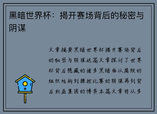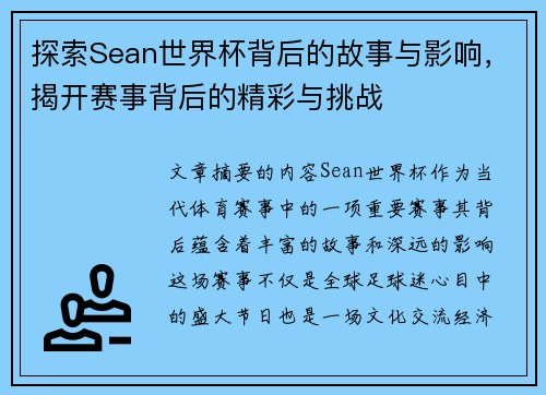 箱子世界杯,作为一个融合创意与竞技的独特赛事,其魅力不仅体现在赛事本身的趣味性和创新性,更在于它如何将全球各地的文化、智慧和技术进行碰撞与交流。这项赛事通过不同国家的团队展示出各自的创意与策略,不仅让观众感受到竞技的紧张氛围,也让人对未来的科技、创新和团队协作产生深刻的思考。本文将从赛事的创意来源、竞技规则、全球影响力以及学术研究的视角,详细探讨箱子世界杯的精彩与独特之处。通过这些不同的方面,本文...