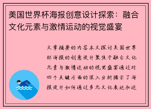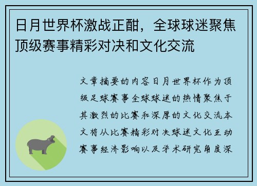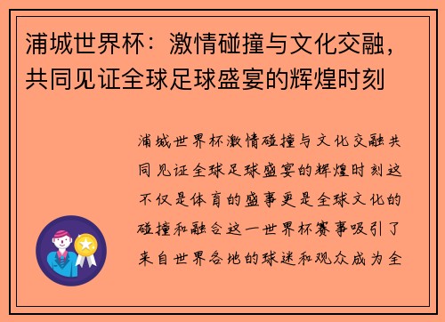 文章摘要:金泽世界杯不仅是一场体育盛事,更是历史与文化交汇的独特旅程。作为全球足坛的重要赛事之一,金泽世界杯将运动、历史、文化和社会背景有机结合,创造了一个多元化的全球化舞台。本文将从四个方面详细探讨金泽世界杯的影响力和意义:首先是它对体育竞技水平和国际体育文化交流的推动作用,其次是金泽世界杯在传承和创新历史文化中的作用,再者是它对城市发展和地区经济的促进作用,最后通过结合学术研究分析金泽世界杯带...